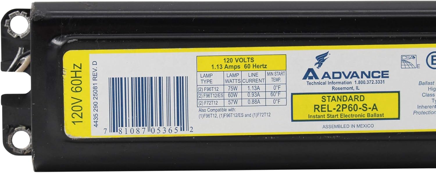 Advance Rel 2p60 S A Instant Electronic Ballast 2 Lamp 96w T12 F96t12 120v Amazon Com
