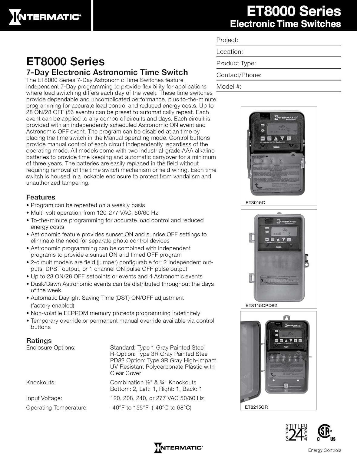 Intermatic 30 Amp 7 Day Spst 1 Circuit Astronomic Time Switch Et8015c The Home Depot