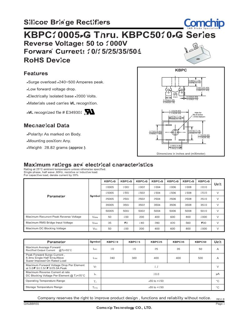 Kbpc5010 Rectifier Datasheet Pdf Bridge Rectifier Equivalent Catalog