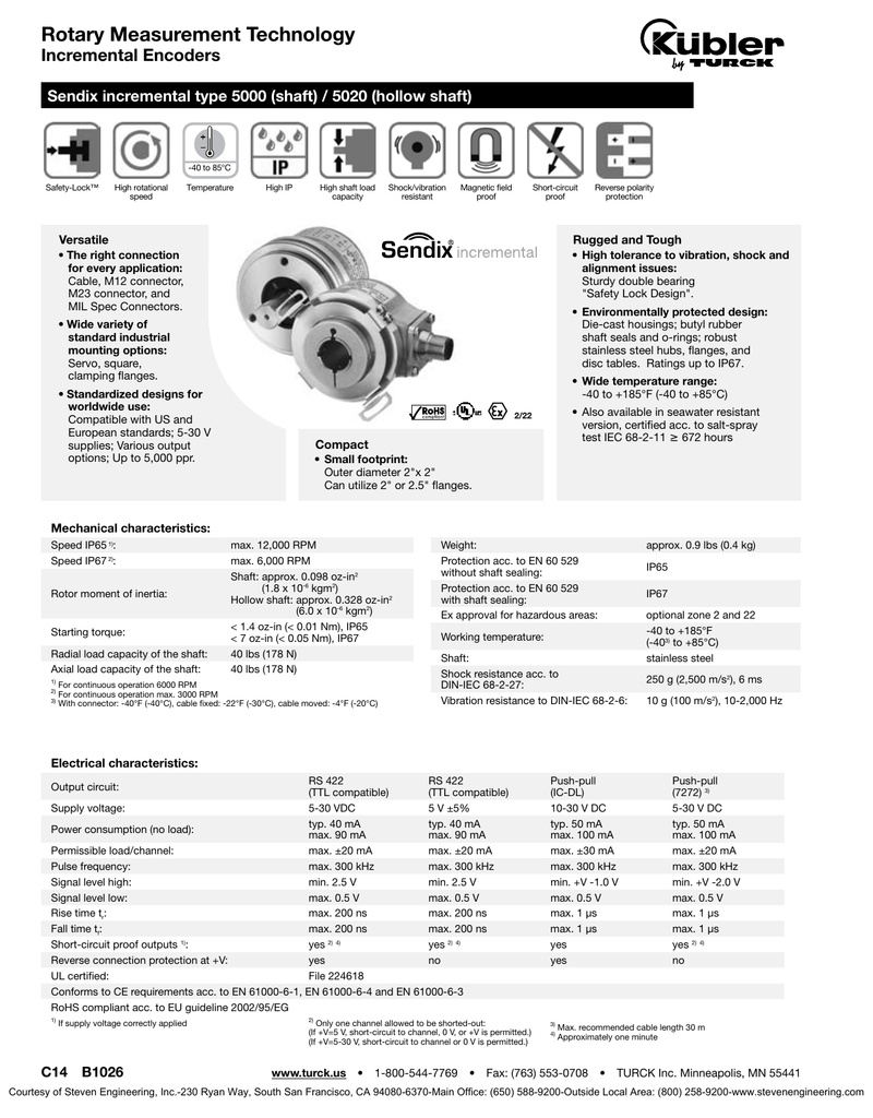 Kubler Incremental Encoder 8 5000 B348 1000 Shaft Rs422 5vdc Radial M23 12pin Ebay