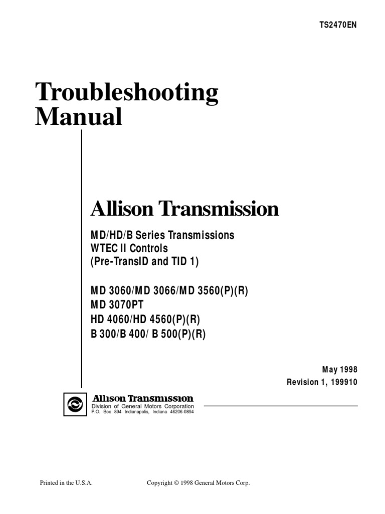 Allison Transmission 1000 2000 3000 4000 Product Families Repair Service Manuals A Repair Manual Store