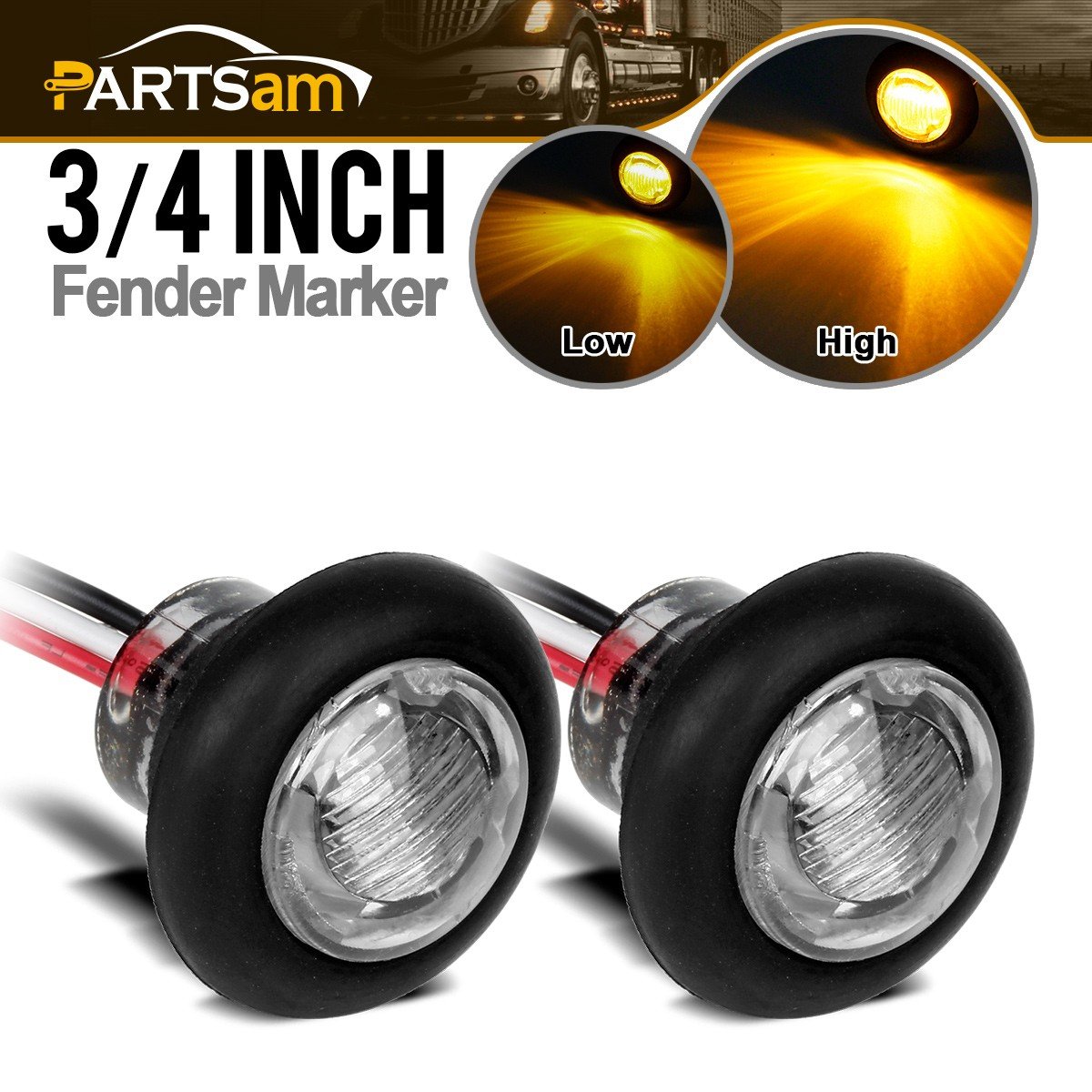 Amazon Com Partsam 2 3 4 Amber Bullet Button Led Marker Side Light Grommet 3smd Clear Lens Aux Stop Turn Tail Flush Mount 3 Wires Automotive