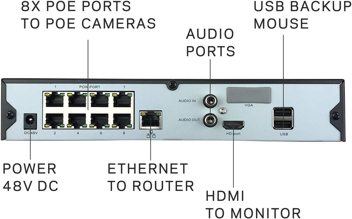 Amazon Com Microseven 4k 8ch Poe Nvr 8mp Compatible With Alexa Security Network Video Recorder 1080p 3mp 4mp 5mp 6mp 8mp Supports Up To 8 X 8 Megapixel Ip Cameras Max 8tb Hdd 1 X Sata Not Included Electronics