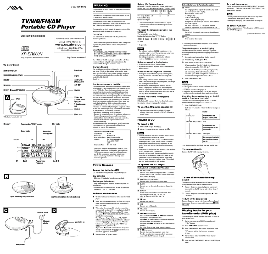 Aiwa Xp Er800n Personal Cd Player Manualzz