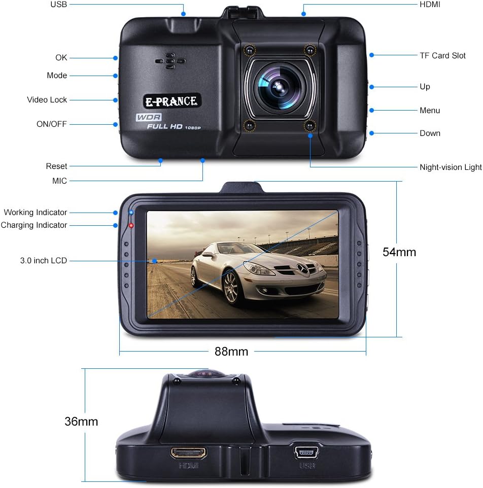 Amazon Com E Prance D101 Car Dvr Dashboard Camera 1080p Full Hd Dash Cam 3 0 Inch Tft Screen 170 Degree Wide Angle Lens G Sensor Infrared Night Vision Motion Detection Unique Parking Surveillance Video