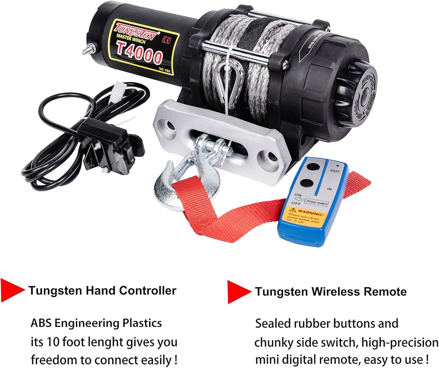 Amazon Com Tungsten4x4 T4000s 1 9 Hp Atv Utv Electric Utility Winch With Hawse Fairlead And Synthetic Rope 4000 Lbs Capacity Automotive