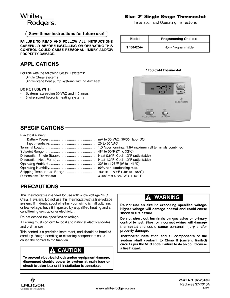 White Rodgers 1f86 0244 Thermostat User Manual Manualzz